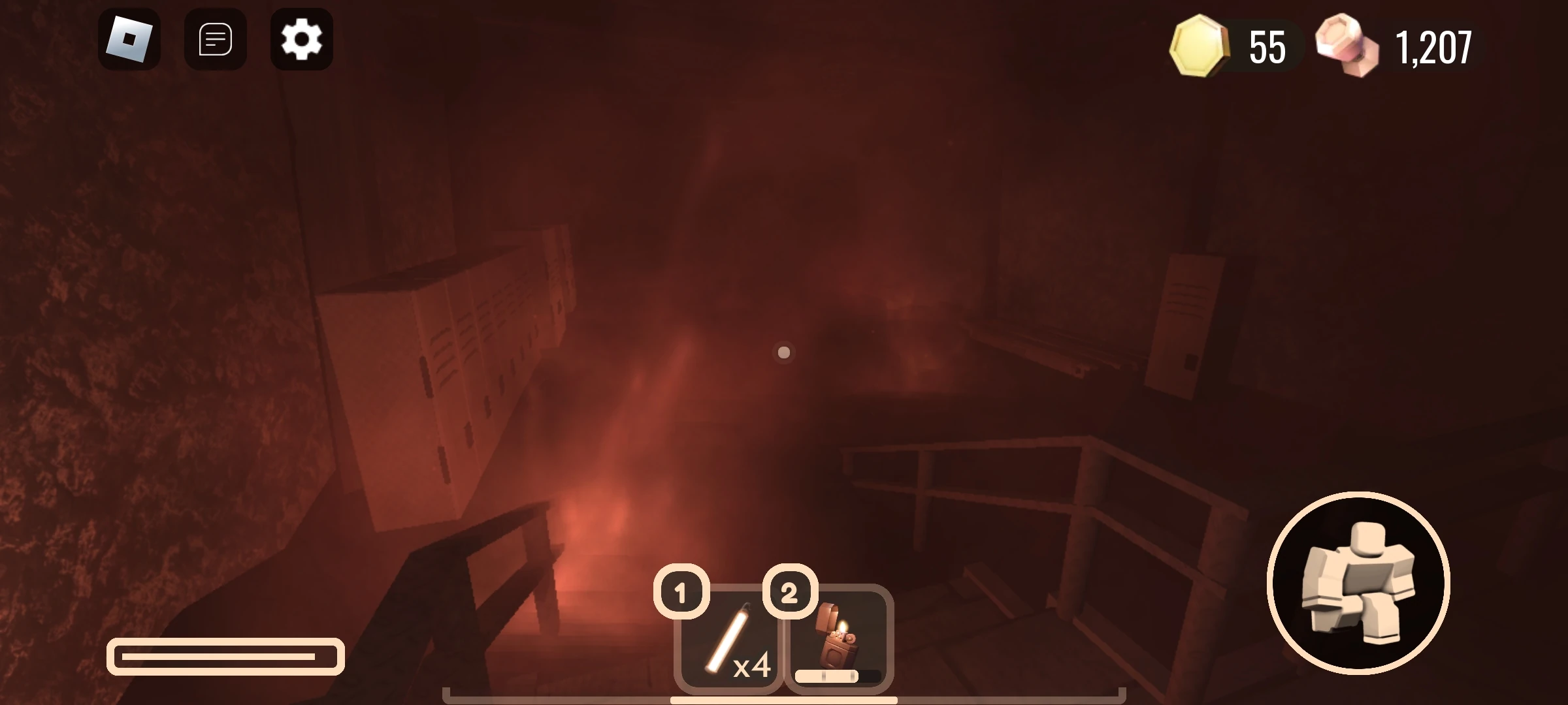 Firedamp rooms are indicated by a fire caution sign on the door and an orange mist inside the room. Players can die in this room if they stay inside it for too long and suffocate (their vision will slowly blur and black out along with their hearing becoming muffled), or if they activate a flammable item inside it, such as a Lighter or a Candle will cause the gas to explode (There is a bug where an already lighted candle won't cause any harm), killing them instantly. Non-flammable light sources like Glowsticks, Flashlights, Spotlights, Straplights, and Laser Pointers are safe to use in Firedamp rooms, as well as the Moonlight Candle, as it is powered by Guiding light and not heat energy.